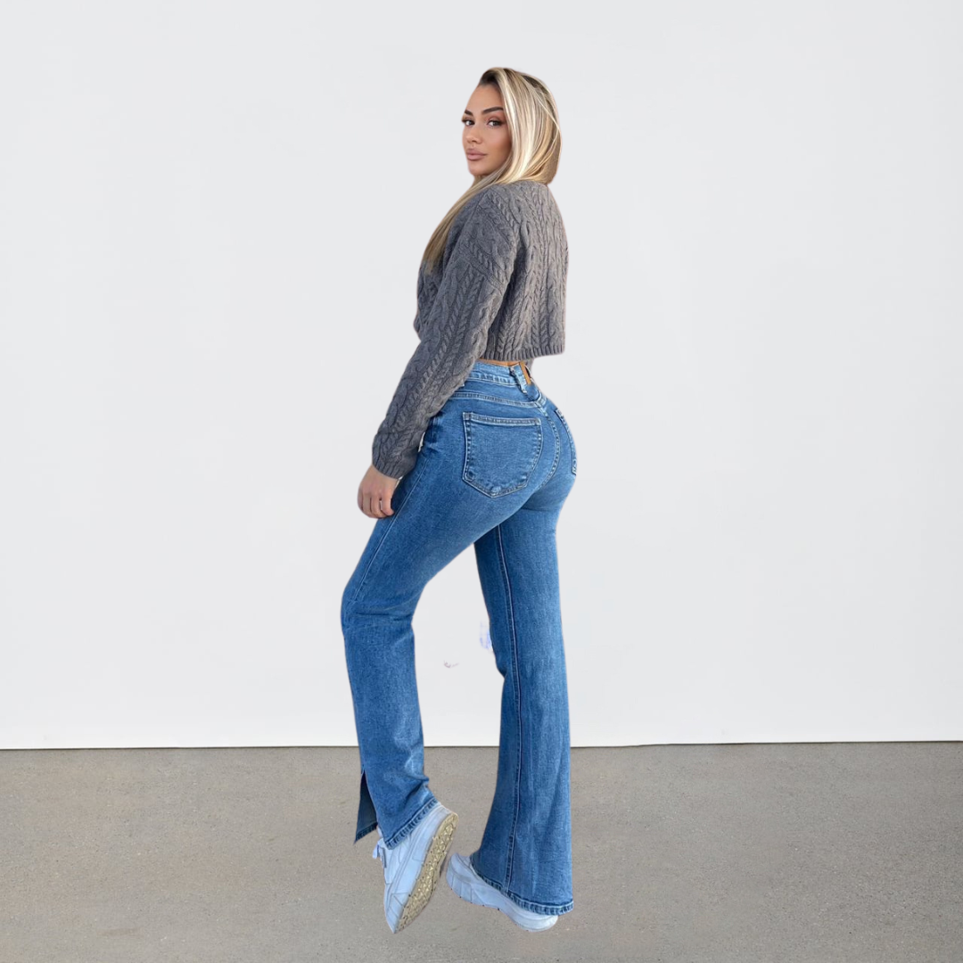 Farmerke dubokog struka sa zvonastim delom nogavice koji se sužava ka kolenu i potom se ponovo širi....