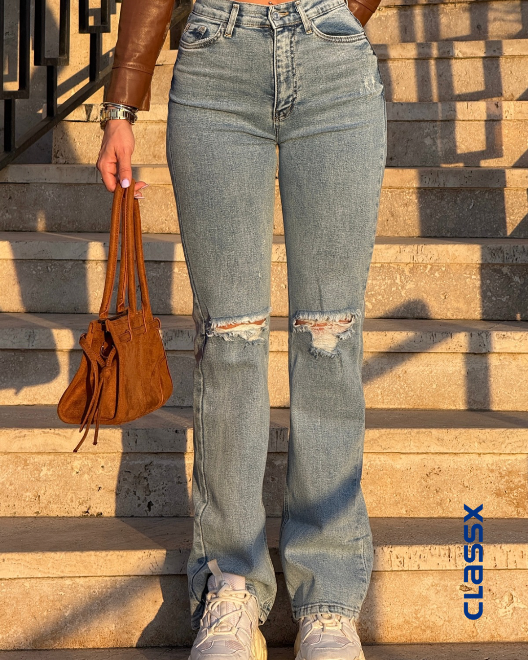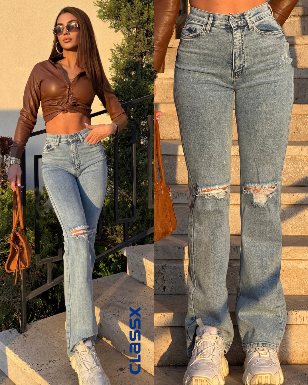 Farmerke dubokog struka sa zvonastim delom nogavice koji se sužava ka kolenu i potom se ponovo širi. Klasičan...