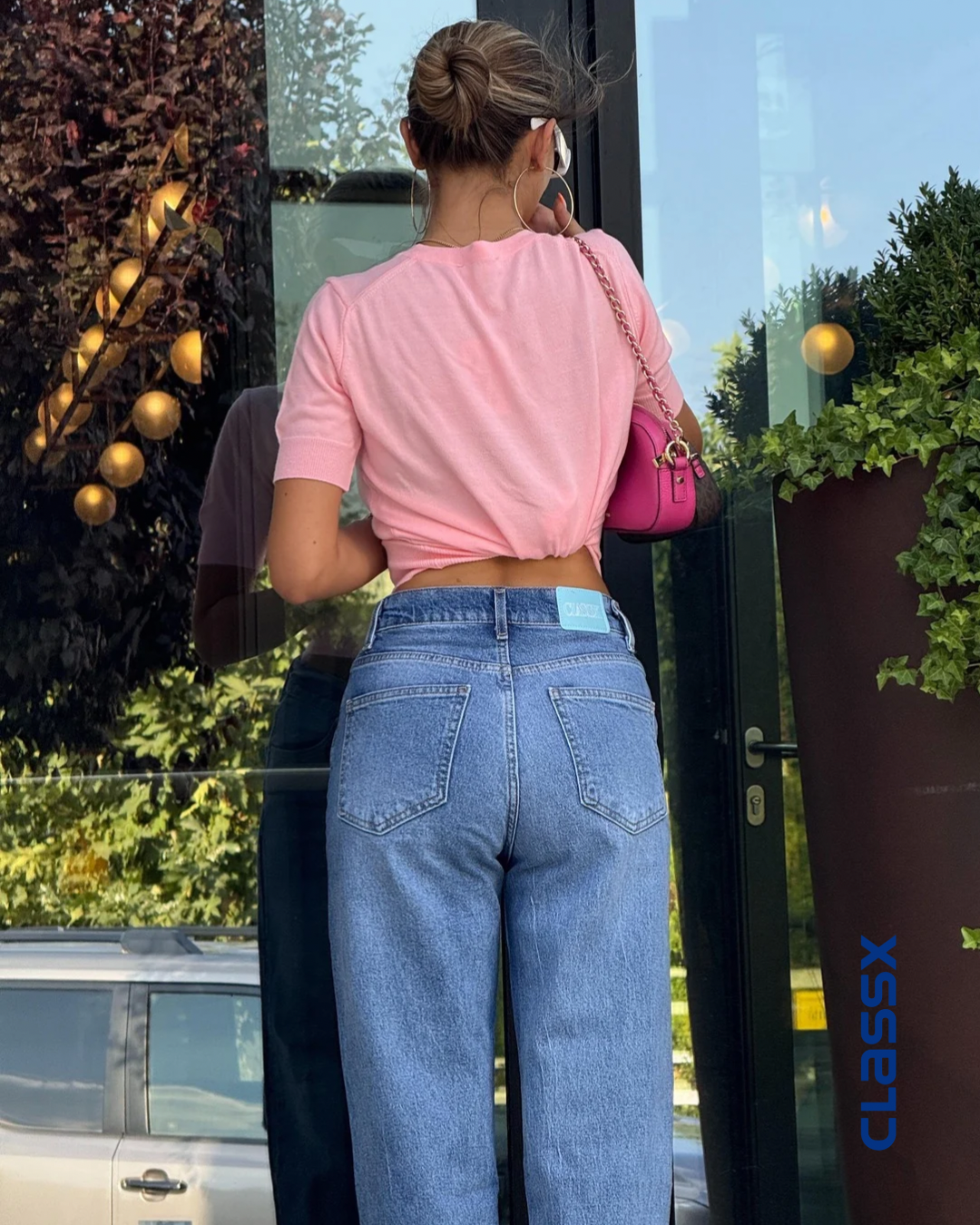 Farmerke od pamuka sa visokim strukom i ravnim nogavicama. Klasičan model sa pet džepova i kopčanjem na...