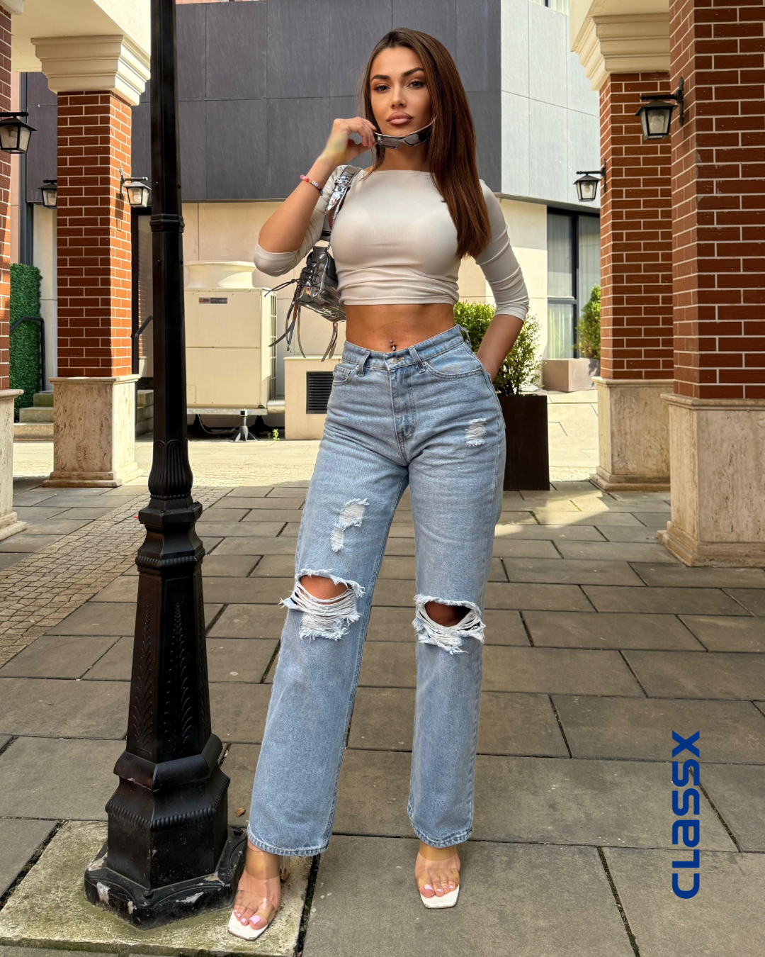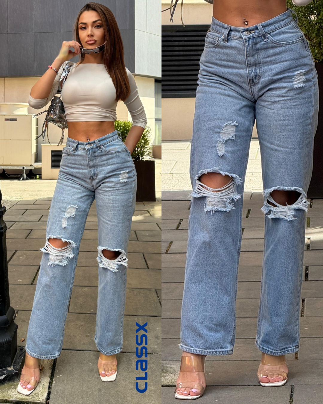 Ove ravne farmerke sa efektnim iscepanim detaljima na kolenima su savršen izbor za sve koji žele da spoje urbano i trendi. Visok struk lepo oblikuje figuru, dok opušten kroj pruža udobnost tokom celog dana. Kombinuj ih sa crop topom i sandalama za chic gradski look koji privlači poglede.