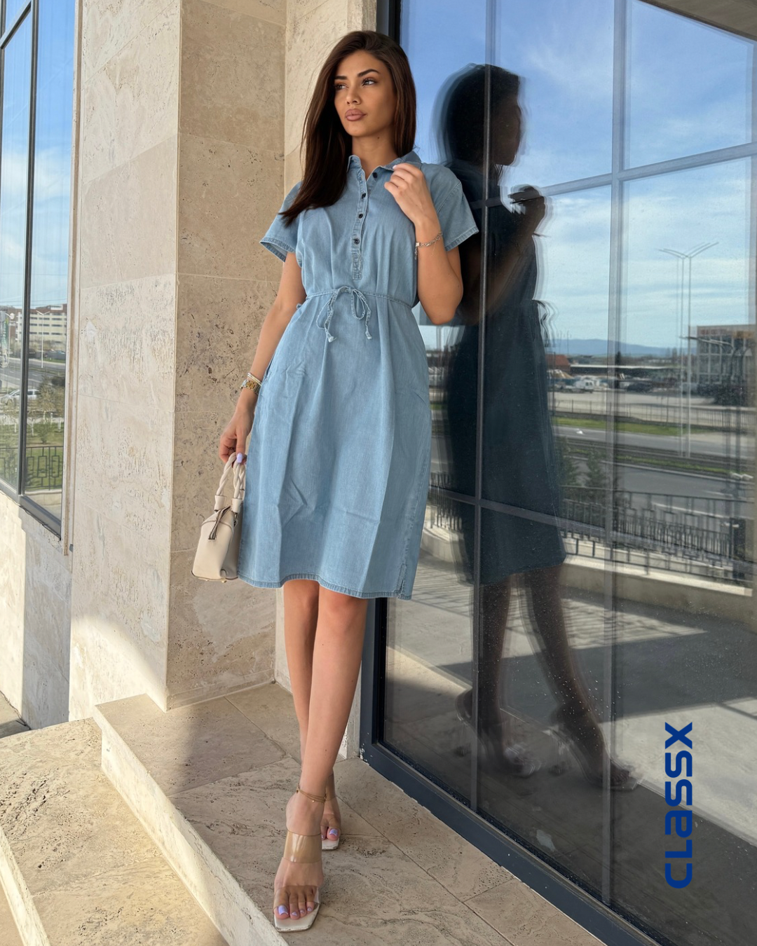 Očaravajuća i nežna, naša jednostavna teksas haljina je savršen izbor za sve prilike. Dizajnirana sa pažnjom doprinosi eleganciji i ženstvenosti. Ova haljina naglašava lepotu svake žene, ističući njenu sofisticiranost i stil. Elegantan kroj pretvara ovu haljinu u neodoljivu opciju za svečane događaje ili romantične večere.