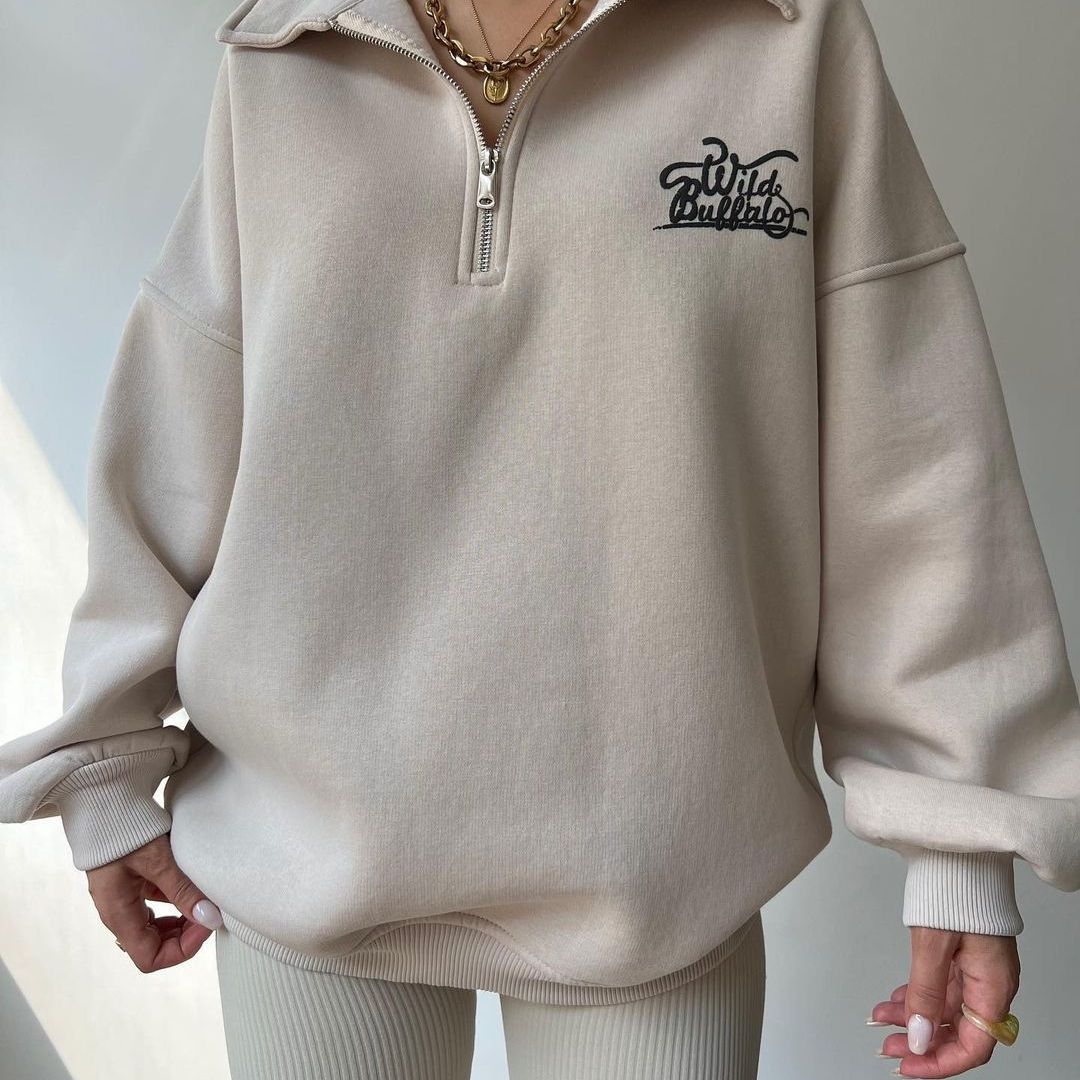 Predimenzionirani ženski duks sa rajsfešlusom u bež boji. Oversize duks, sinonim za udobnost i moderan izgled, predstavlja vrhunski...